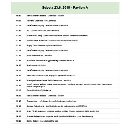 15:00 Vodiči závodu Mattoni 1/2Maratonu Olomouc - přijďte se seznámit s vodiči závodu, kteří Vás dovedou do cíle na vysněný čas